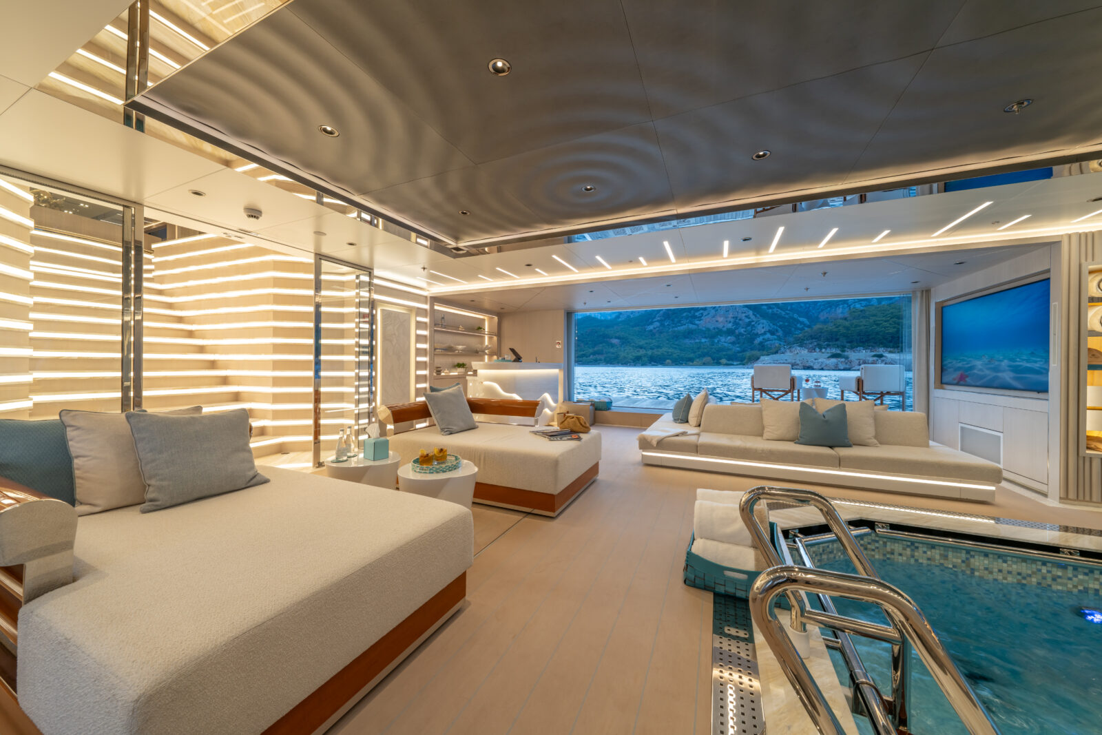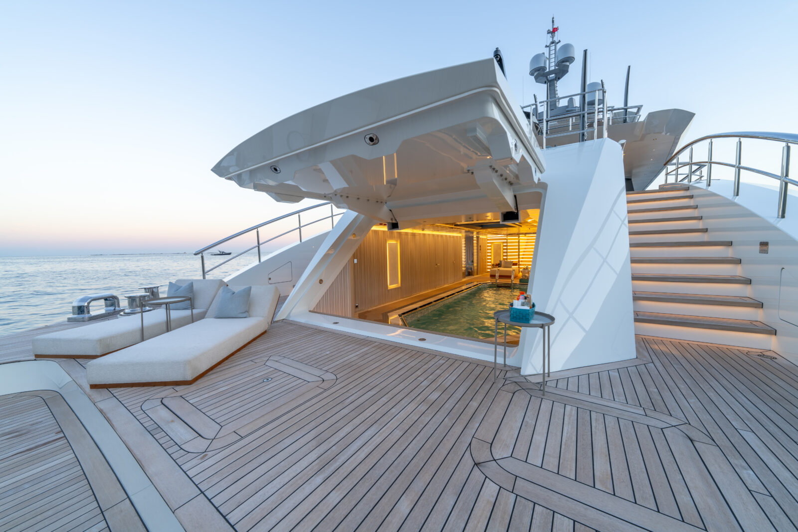 Her interior was designed by H2 Yacht Design, who has 52 other superyacht interiors designed in the BOAT Pro database – she is built with a Teak deck, a Steel hull, and Aluminium superstructure.